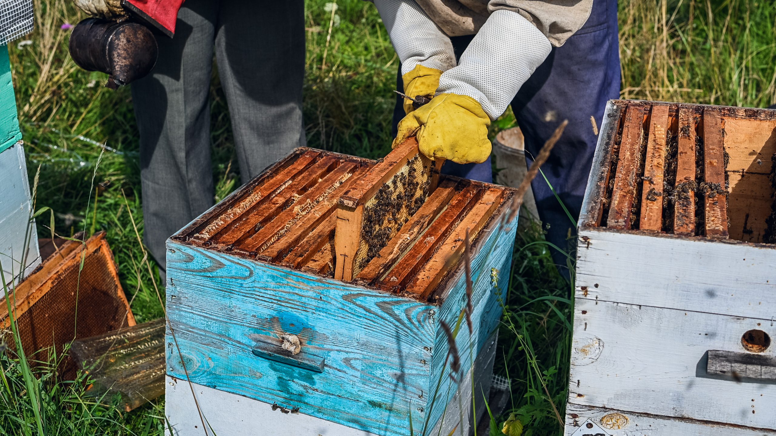 Close up view of the opened hive